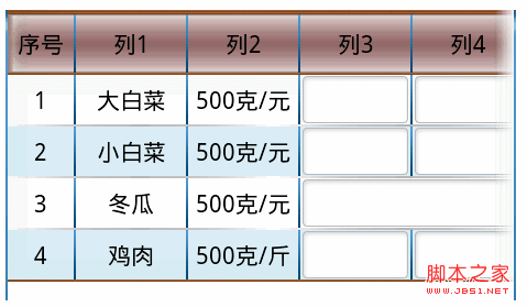 以上是核心的文件內容。有了列合並,行合並也不遠了。可以在自定義的布局中多加個LinearLayout來實現行合並。