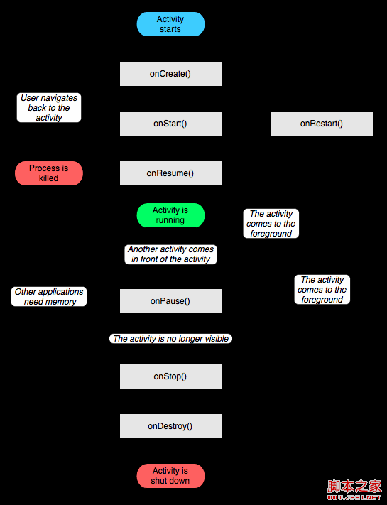 OK,大功基本告成,這時候大家可以在回上面看一下Activity生命周期圖,我想大家應該完全了解了Activity的生命周期了,不知道你了解了沒?