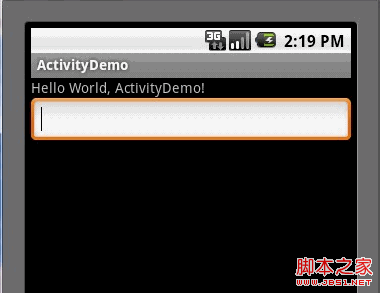 這裡我們會引出一個問題,當我們按HOME鍵,然後再進入ActivityDemo應用時,我們的應用的狀態應該是和按HOME鍵之前的狀態是一樣的,同樣為了方便理解,在這裡我將ActivityDemo的代碼作一些修改,就是增加一個EditText。