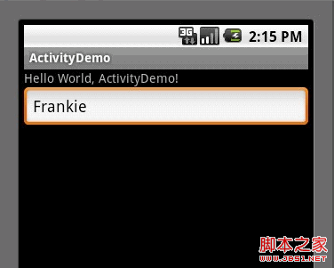 第五步:然後其他不變,運行ActivityDemo程序,在EditText裡輸入如"Frankie"字符串(如下圖:)