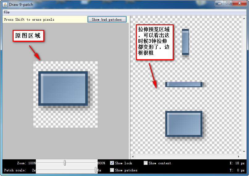 默認的拉伸是整體拉伸,其實邊框部分我們並不想拉伸,好,我們自己來定義拉伸區域,如下圖: