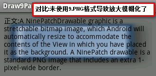 可以看出,邊框非常的清晰。下圖是未使用.9.PNG的對比圖,而且也不是我們要的效果: