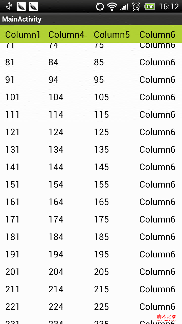 3.2. 捕獲 數據行 區 的控件(該控件其實就是ListView控件 )的OnTouch事件,不處理,同樣分發給 “列頭裡的 可滾動部分的控件”。 這兩步,就完成了一個小效果,點擊表 格的頭部和體部都能移動(滾動)行。