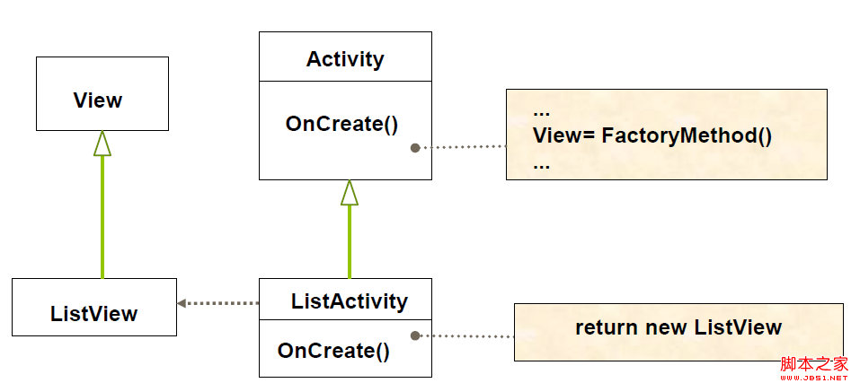 總結:Activity作為“工廠方法”,具體View中顯示什麼由默認設置或者由子類來實現;ListActivity作為具體實現,它決定在View中顯示的是ListView;這裡的View是Activity中的默認顯示,即為“Product”,而ListView是“ConcreteProduct”,由ListActivity來決定顯示。