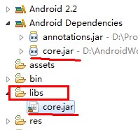 在adt17的版本之後,導入第三方jar包,要建立一個libs目錄,不能使用lib命名,adt會自動將jar依賴。不用手動添加了。