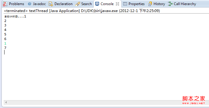 程序運行後開始啟動線程,線程啟動後就計算逝去的時間,每過1s將結果輸出到控制台。當輸入1字符後線程停止,程序終止。如圖所示。
