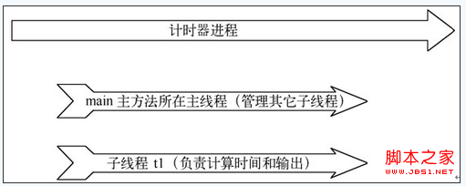 線程與進程相似,是一段完成某個特定功能的代碼,是程序中單個順序的流控制。但與進程不同的是,同類的多個線程共享一塊內存空間和一組系統資源,所以系統在各個線程之間切換時,資源占用要比進程小得多,正因如此,線程也被稱為輕量級進程。一個進程中可以包含多個線程。圖所示是計時器程序進程和線程之間的關系,主線程負責管理子線程,即子線程的啟動、掛起、停止等操作。