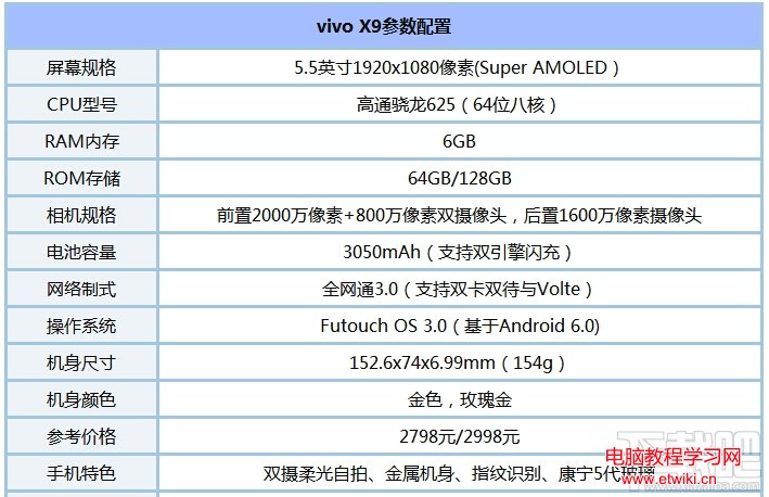vivo X9高配版:4GB RAM + 128GB ROM,售價2998元。