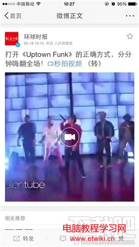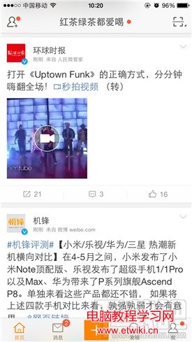 2、然後我們打開新浪微博客戶端,找到我們想下載的微博秒拍分享視頻。如圖:
