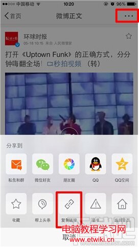 4、選擇右上角的【...】按鈕,然後選擇復制鏈接。