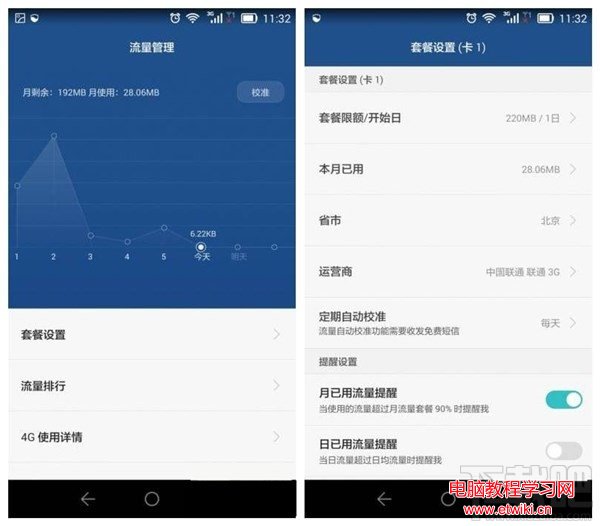 下面就介紹榮耀6自帶流量監控功能調出方法: