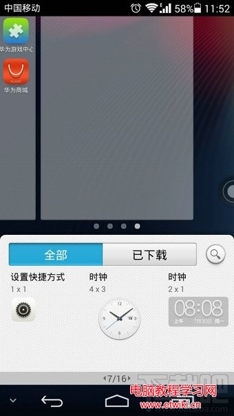 在窗口小工具下面的全部中,向右滑動,找到“設置快捷方式”。