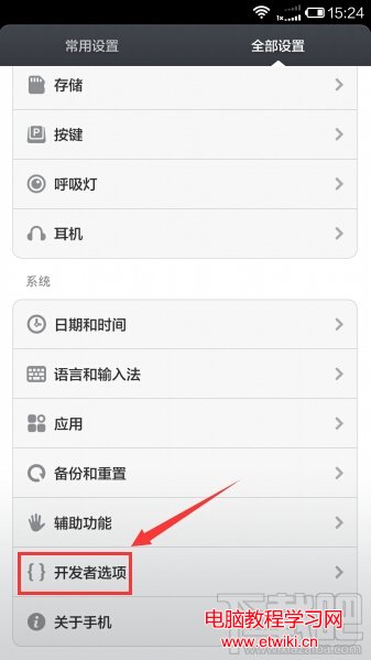 4.接下來點擊“全部設置”中的“開發者選項”進入。