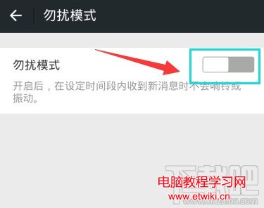 點擊勿擾模式開關,“開啟後,在設定時間段內收到消息不會響鈴或振動”,所以睡覺的時候再也不用怕被消息騷擾了。