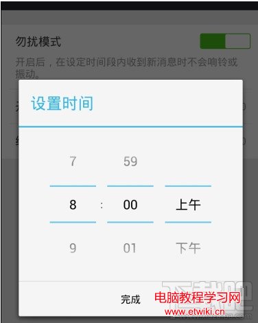 設置消息免打擾的結束時間,這個不能早於自己的起床時間,如果設置得太早微信就成了第一個鬧鐘了。