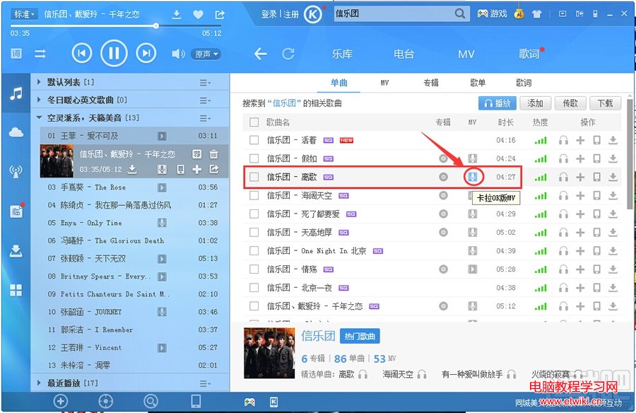 2.搜索你想唱的歌曲,然後點擊“mv”的這個標志,進入mv