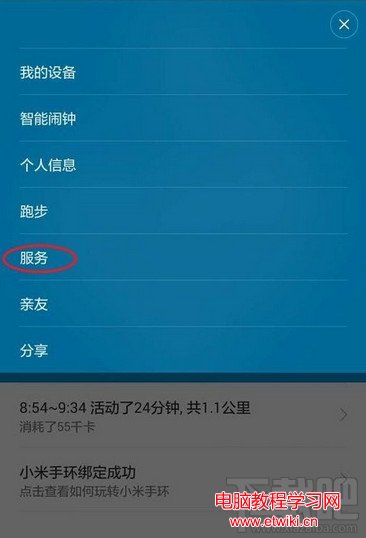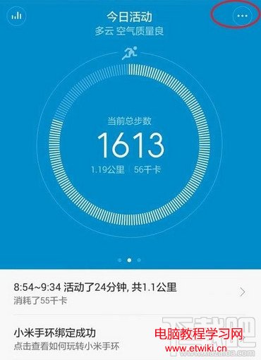 先請手機上打開小米手環,點擊右上角的“更多”選項圖標,如圖所示