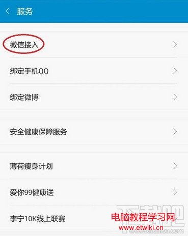 在列表裡,點擊“微信接入”一欄,如圖所示