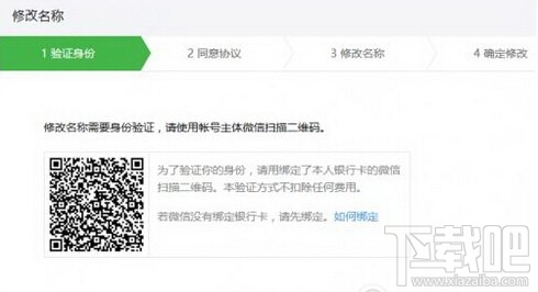 點擊“修改”進入改名之後,用戶需要通過賬戶主體微信賬號掃描二維碼進行驗證,之後同意改名協議,設定新的名稱(3-30個字符)即可。