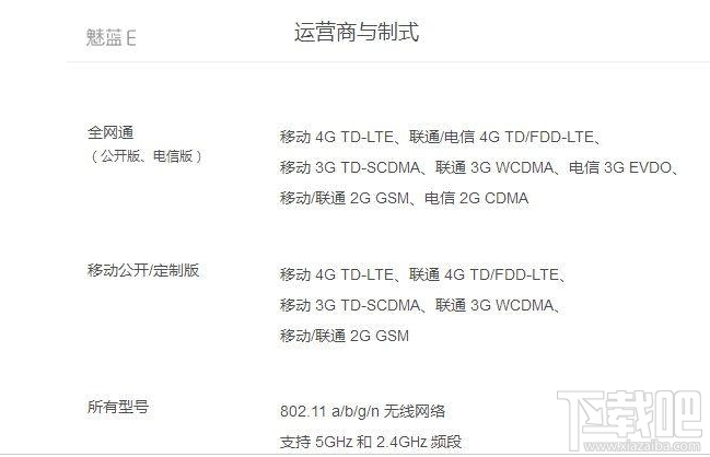 魅藍E網絡制式支持