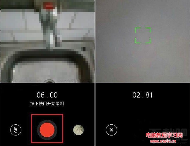 三,之後就類似拍攝視頻界面了,這裡就是拍攝動態圖片的界面,點擊下面的“紅色錄制按鈕”,就可以拍攝Gif動態圖片了,如圖所示。