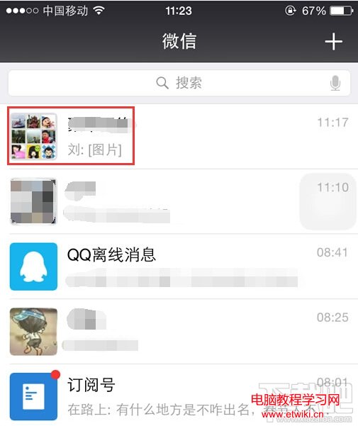 1.登錄微信,進入消息頁面或者群通訊錄,找到要查看群主的微信群。