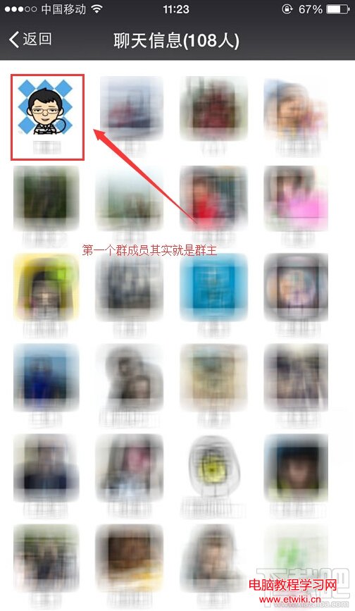 5.而群的創建者往往會顯示在群成員第一排的第一個位置,所以我們進入群成員頁面後,看到的第一個群成員其實就是群主。