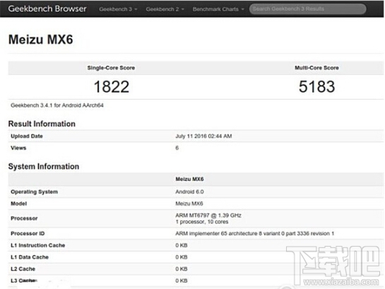 跑分網站的信息顯示,魅族mx6將搭載1.39GHz十核處理器Helio X20,輔以4GB RAM,預裝Android 6.0操作系統,這跟之前安兔兔給出的該機配置信息是相一致的。