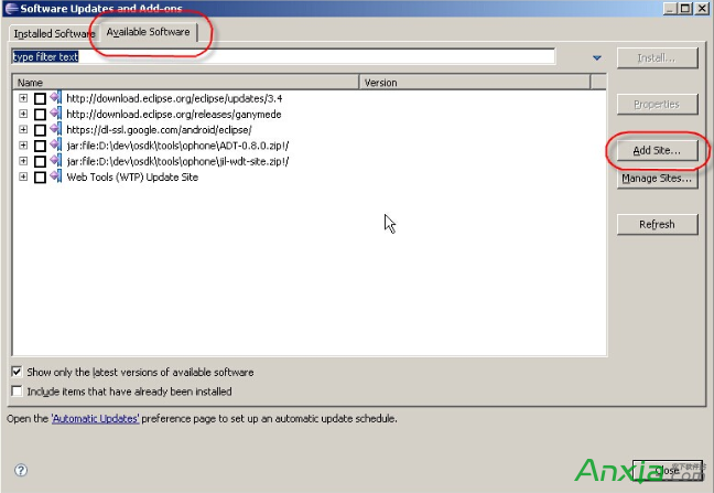 (4)找到OPhone SDK安裝目錄下tools\ophone\ ADT-0.8.0.zip(因為我已經安 裝好了ADT,所以出現了重復URL的提示),點擊OK即可開始安裝