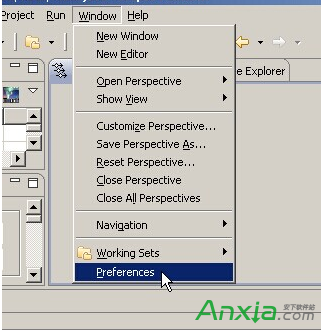 (5)ADT安裝完畢後還要簡單配置一下,打開菜單中的Window -> Preferences