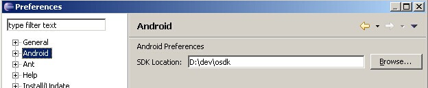 (6)找到Android項,通過Browse按鈕指定Android SDK的安裝位置