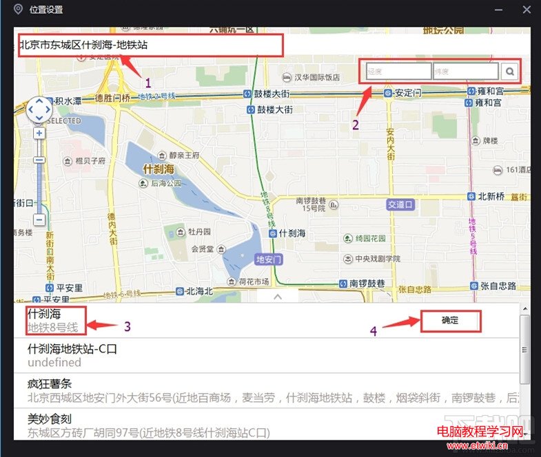 3、在跳出的頁面中選擇要定位的位置,確定位置後點擊“確定”按鈕,就設置成功啦!