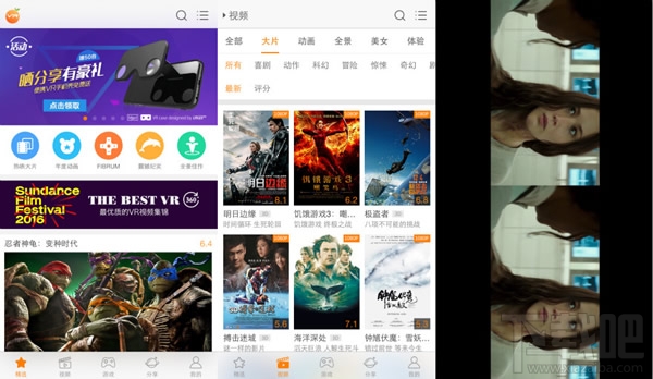 具體來說,橙子VR是一個提供3D、全景、VR視頻播放、VR游戲下載、VR熱點資訊的VR資源聚合平台,支持市面上大多數的VR眼鏡。