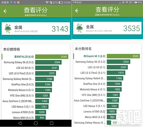 在3D游戲的測試中,搭載麒麟955的榮耀V8有不明顯的輕微掉幀現象,但沒有卡頓等影響體驗的現場。小米5的游戲整體體驗更為流暢,沒有肉眼能識別的掉幀以及卡頓。