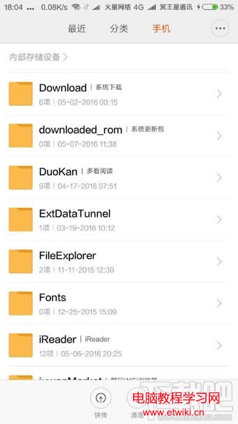 比較徹底的升級方式,在MIUI下載找到並下載MIUI8升級完整包,將拷貝到手機的dowload文件夾中,在手機系統升級頁面中點擊右上角“...”,選取手動選擇安裝包,找到升級包,點擊升級。