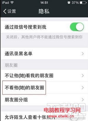 二、這裡的設置不是通用而是在隱私項中,隱私項中可以設置權限,包括剛剛朋友圈屏蔽誰或不想看誰都可在這裡設置。