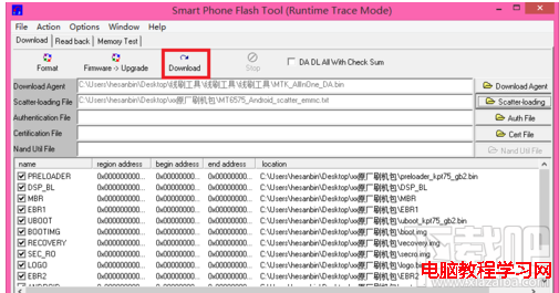 接著 回到刷機軟件 點download