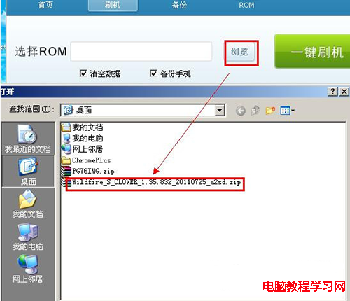 5、點擊進入一鍵刷機進入刷機功能界面,選擇“浏覽”,選擇刷機包。