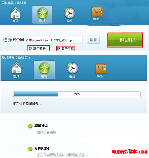 在進行刷機過程中請確保自己的手機上有足夠的空間,發送Rom完畢之後就可以斷開數據線了,刷機精靈的使用就講到這裡,希望對大家有所幫助