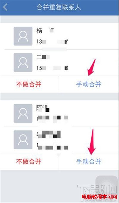 6、對這些聯系人進行合並等處理,很簡單哦。