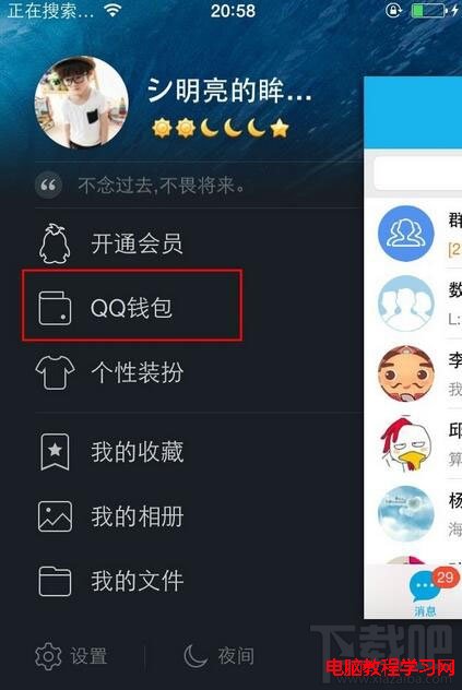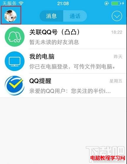 1、新版的手機QQ,再界面樣式上面有啦很大的改變,所以之前的“設置”現在在界面上也已經看不到啦,只要你在“消息”裡面點擊你的QQ頭像時,或者直接用手指從左向右滑動,才會找到設置界面;