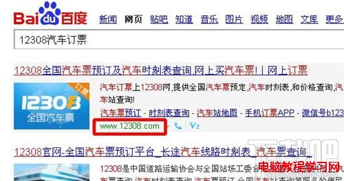 1、首先在電腦百度搜索【12308汽車訂票】進入;