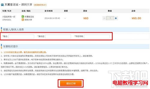 5、在訂單面頁填寫好相應的取票信息在點擊【提交訂單】;