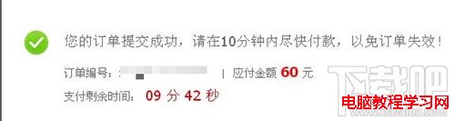 7、注意哦:要在10分鐘內支付完成後,不然訂單會自動取消的;