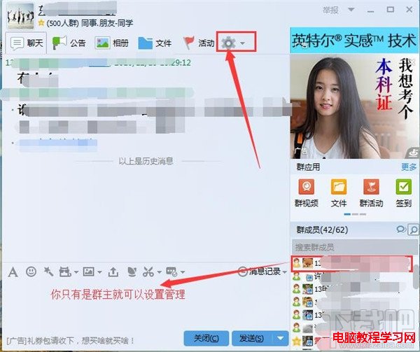 2、找到一個你自己的群,點擊設置圖標(這個群必須是你自己創建的,你就是群主,只有你是群主才有權利設置別人為管理員);