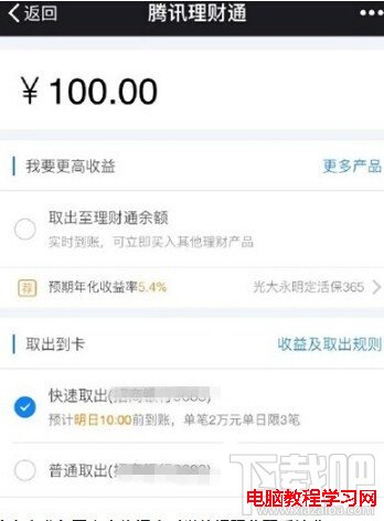 第三步:將剛買的理財通提現到你的銀行卡就OK啦!