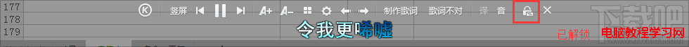 第二步,相同的步驟,現在如圖已經解鎖了,想上鎖呢也可以按一把鎖的圖標,歌詞就能上鎖了。非常簡單。