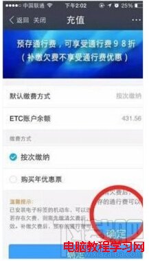 5、按要求填寫完成,就可以查看到ETC賬戶余額了,最後還要點擊確定。