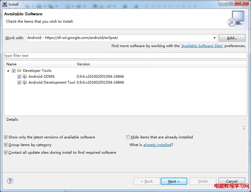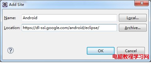 輸入網址: https://dl-ssl.google.com/android/eclipse/ (如果出錯,請將https改成http)