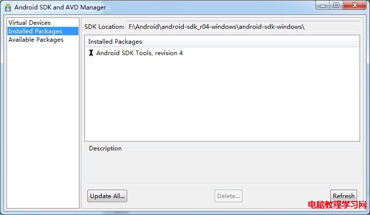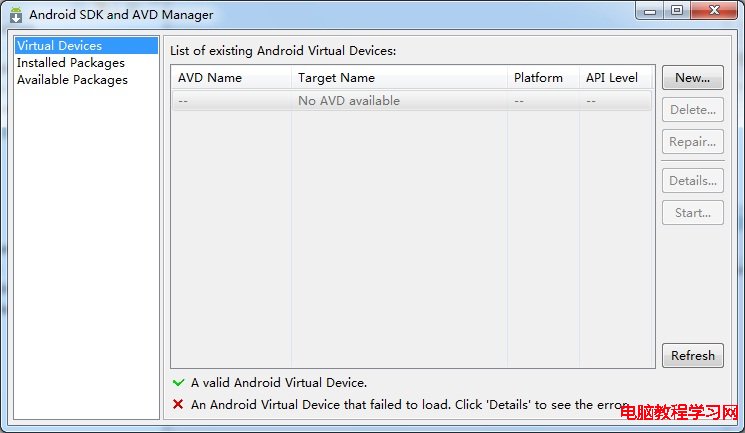 (2)升級SDK版本,選擇菜單 window->Android sdk and avd manager 出現如下界面